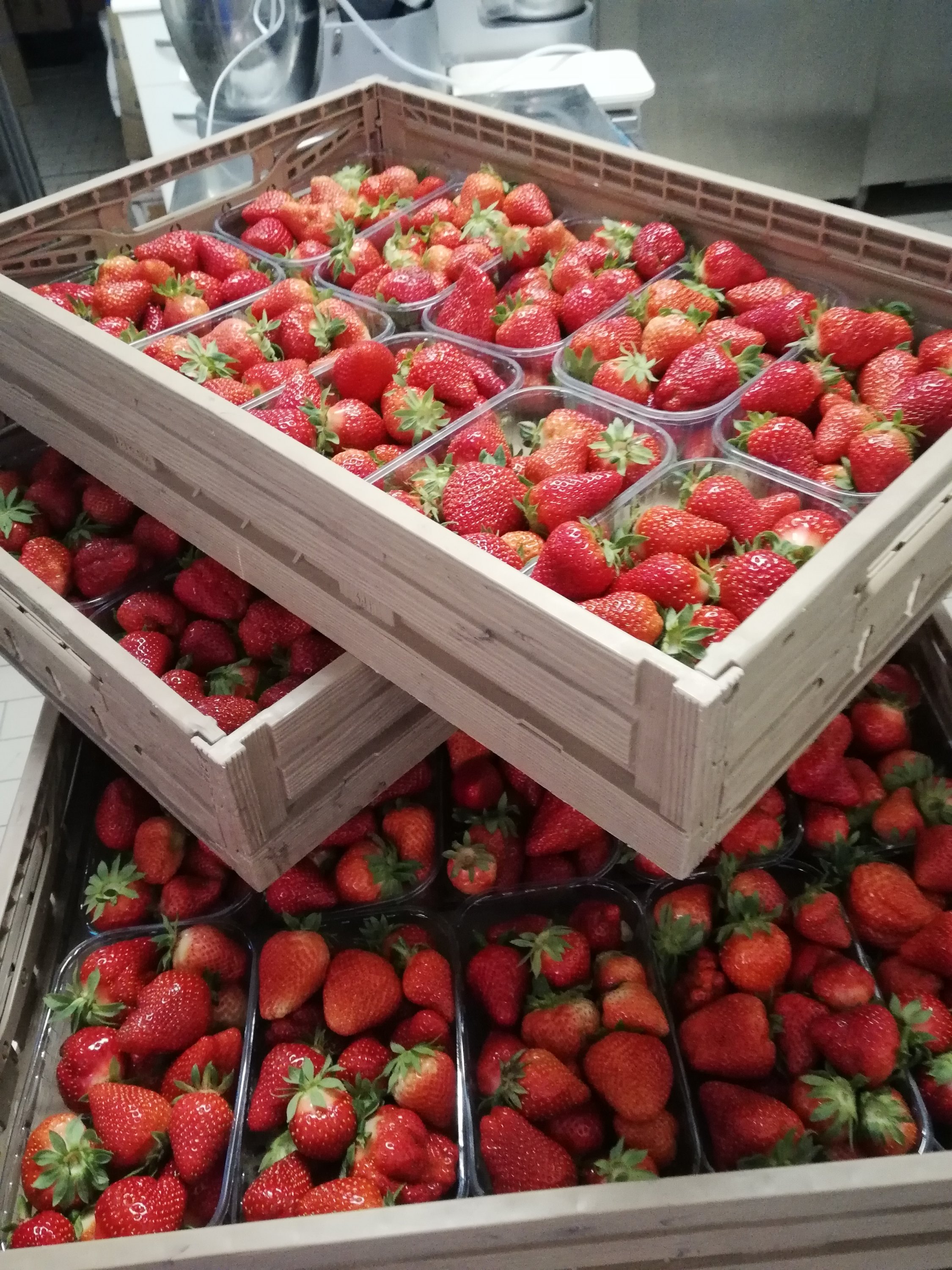 È il gelato di fragole, rigorosamente fresche e a km. 0 le acquistiamo direttamente dall’azienda agricola Guerrini di Malmissole-Roncadello, appena colte le portiamo in laboratorio per trasformarle in gelato e granite.